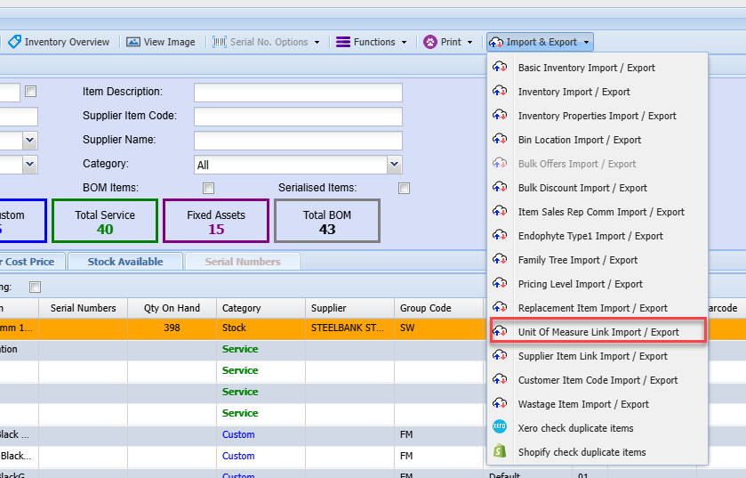 Unit of Measure Link Import/ Export