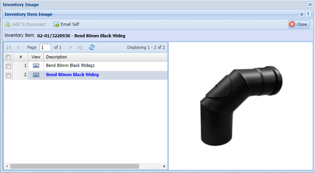 A window allowing the user to view an image of the inventory item provided an image has been loaded.
