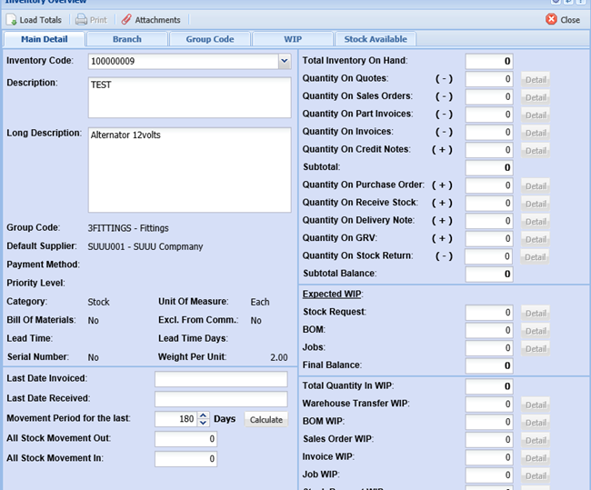 This is where one can view movement’s summary of the selected inventory code.