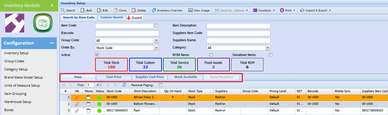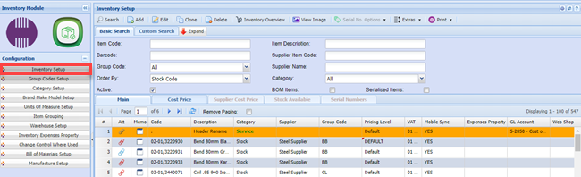 | Inventory Code | this is a unique code that identifies the Inventory Item. The Code field can be Alpha Numeric and over 200 Characters long. |