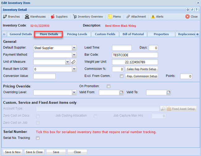 GeneralInventory Details Tab