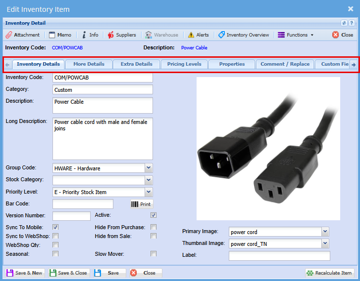 Fill in all the relevant information on the inventory item.item following the Tabs.