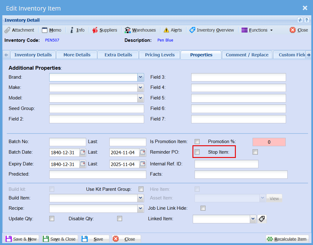 Inventory Stop Item