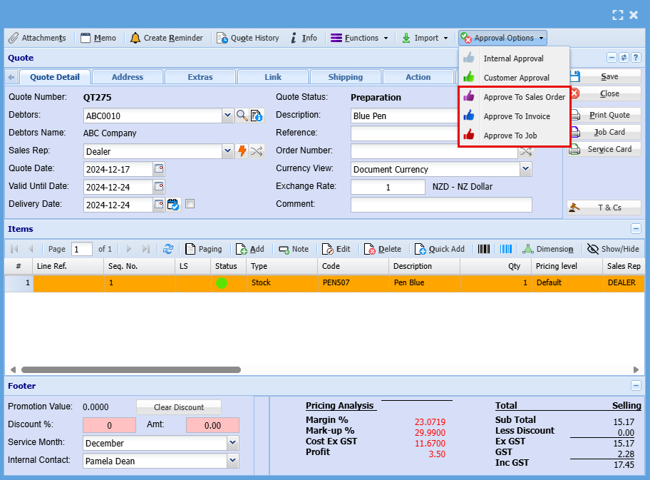 | 1 | Approve to Sales Order |