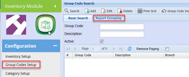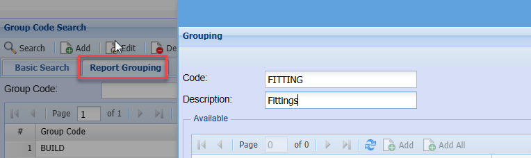 To link multiple group codes, click the Report Grouping tab