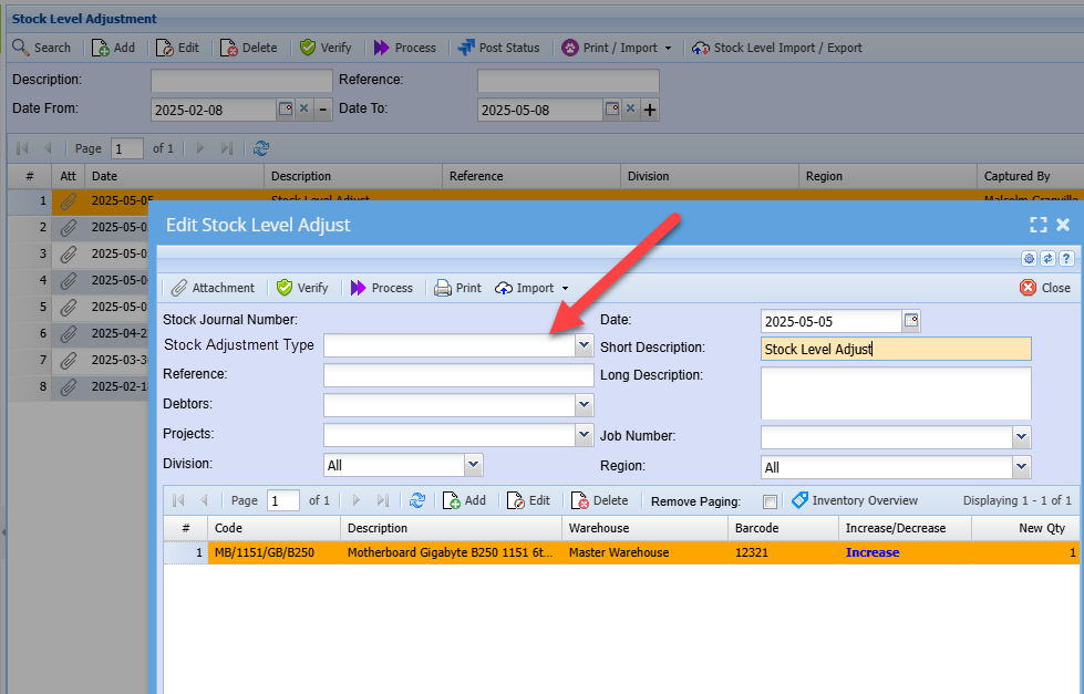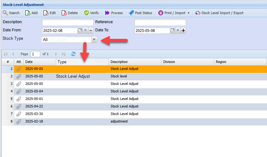 All stock level adjustments will require a stock type, when the stock type is select, the description will be copied to the short description.