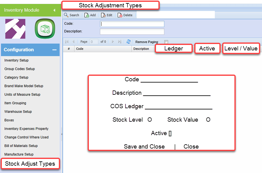 All stock level adjustments will require a stock type, when the stock type is select, the description will be copied to the short description.