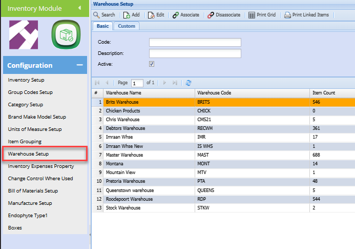 | Disassociate | Allows you to delink all stock items to a warehouse |