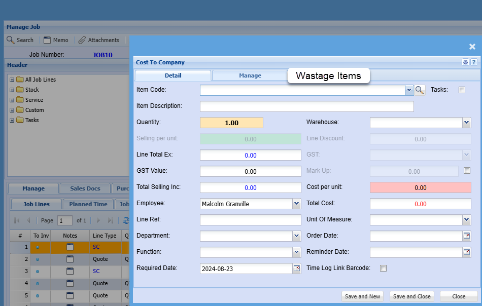 The cost price and sell price comes from the main item that the wastage item is linked.