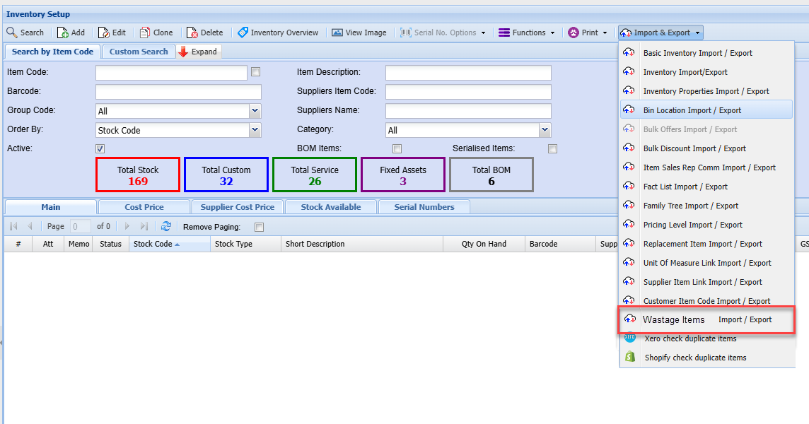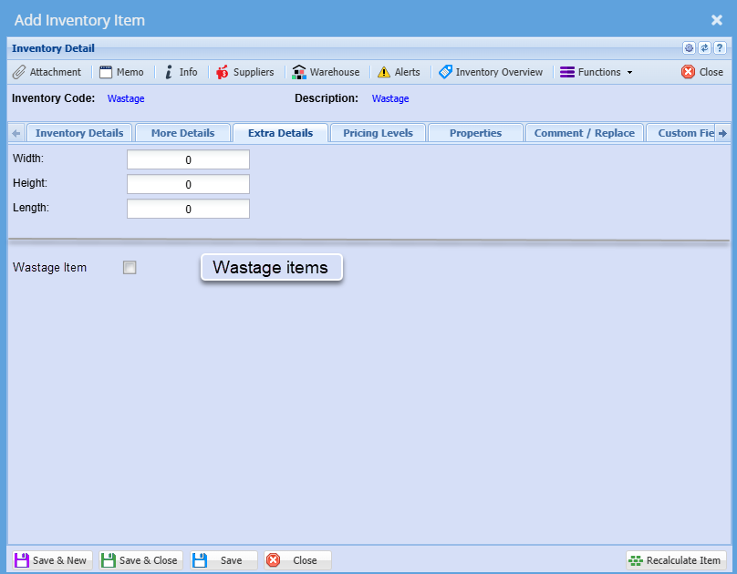 Track wastage items by creating a new wastage item and flagging it a wastage item.
