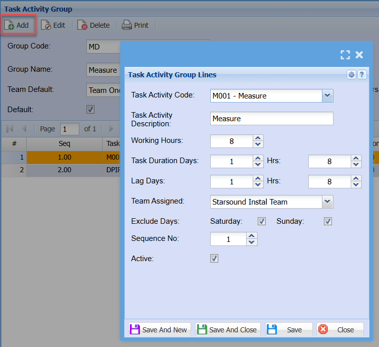 Job Costing>Configuration>Task Activity Group