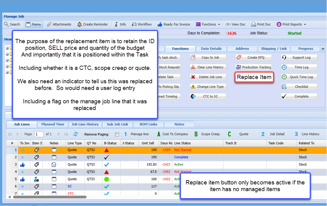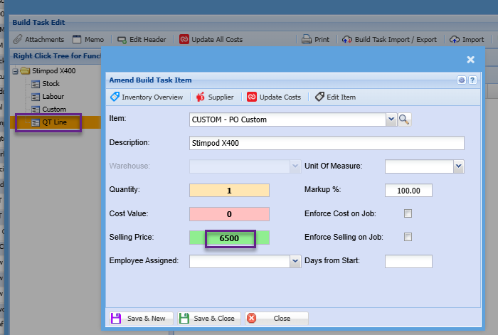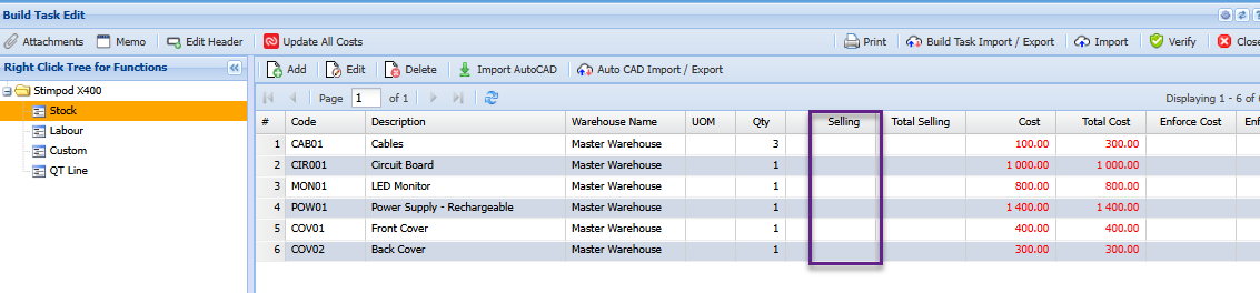 When using build tasks on the jobs, there are instances when the underlying components may change on the actual job during manufacture. the replacement component may have a different sell price compared to the original item on the task.