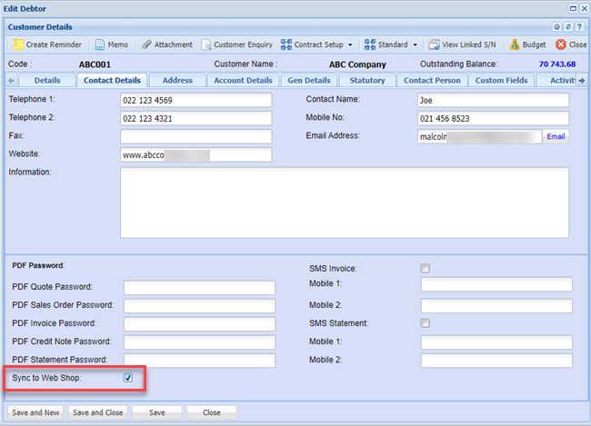 When you setup your customer and you tick the Sync to Webshop