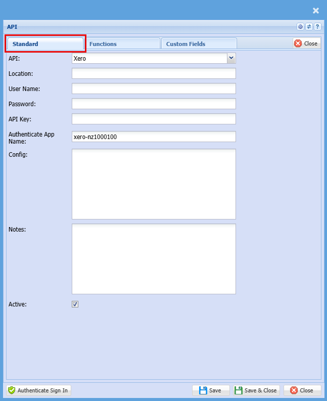 Xero API Link settings
