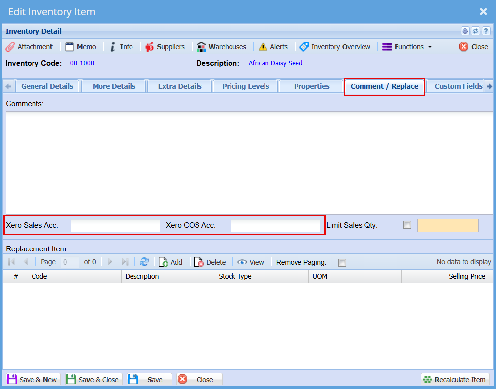 Go the Comment/Replace Tab, here you can stipulate a specific account that this item must go to when adding this item to an invoice.