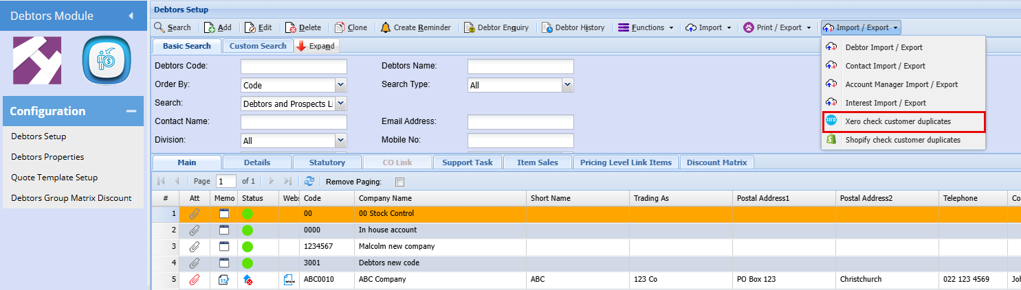 When the utility finds the same customer, it will write an internal code from Xero into the tables of Huge ERP.