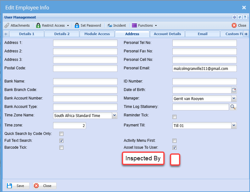 Setup users to be ticked that they are inspectors
