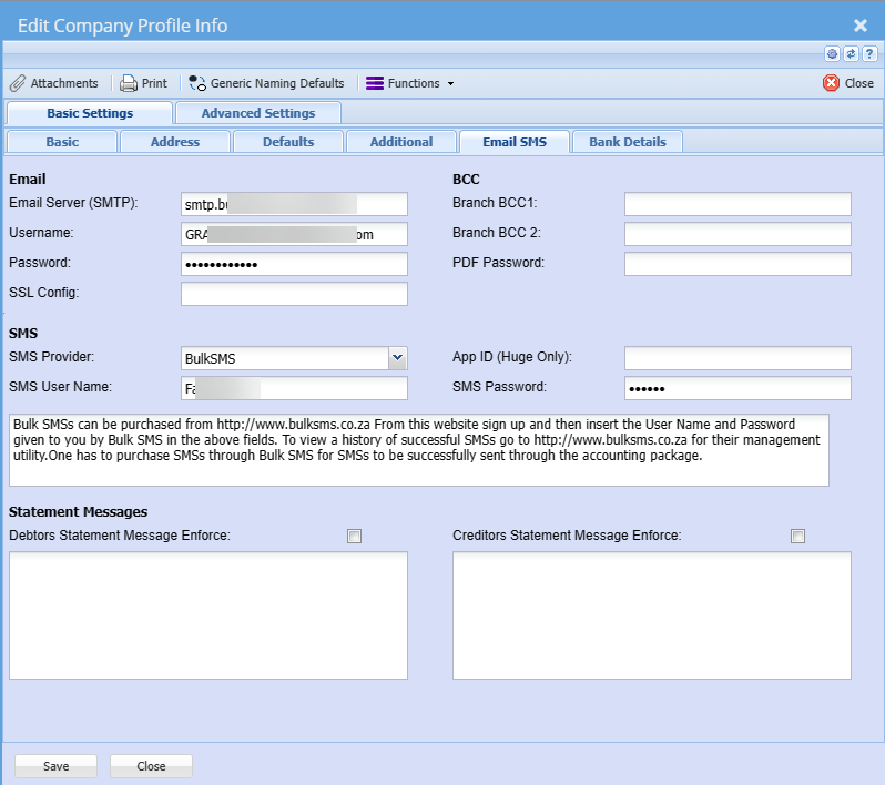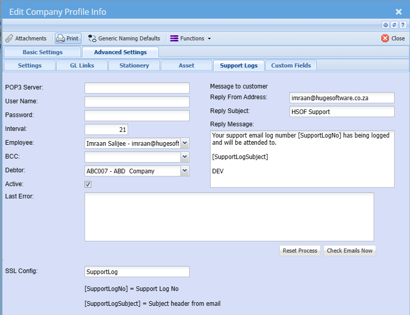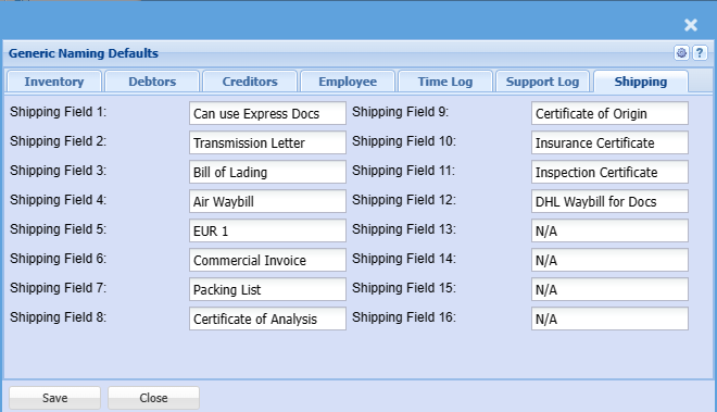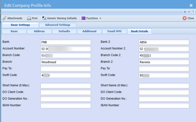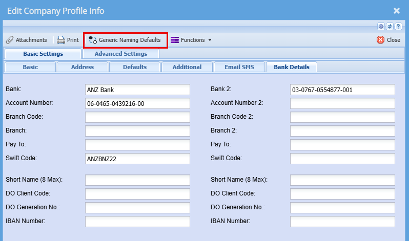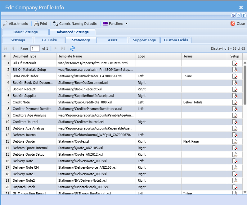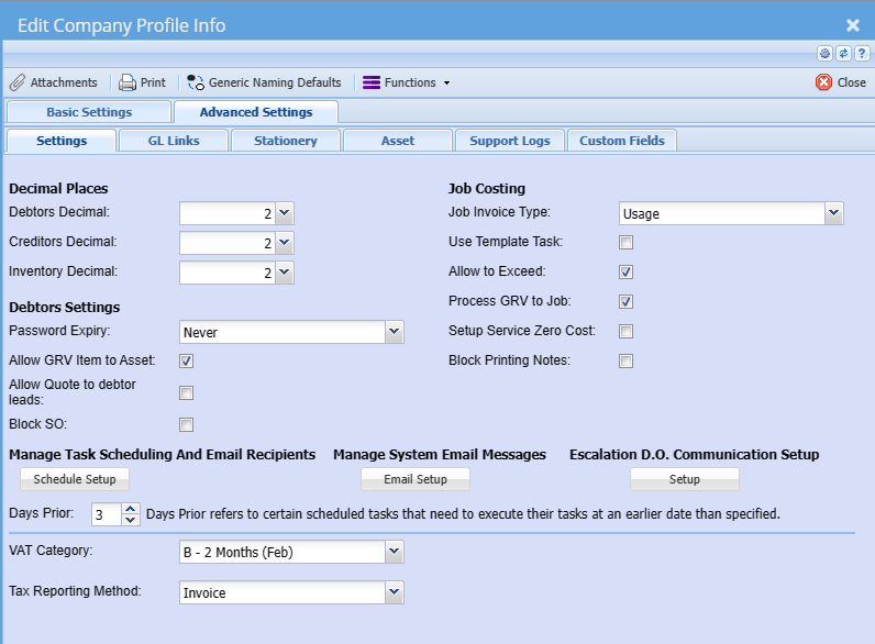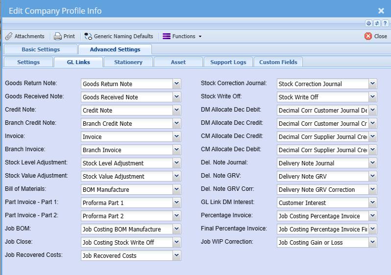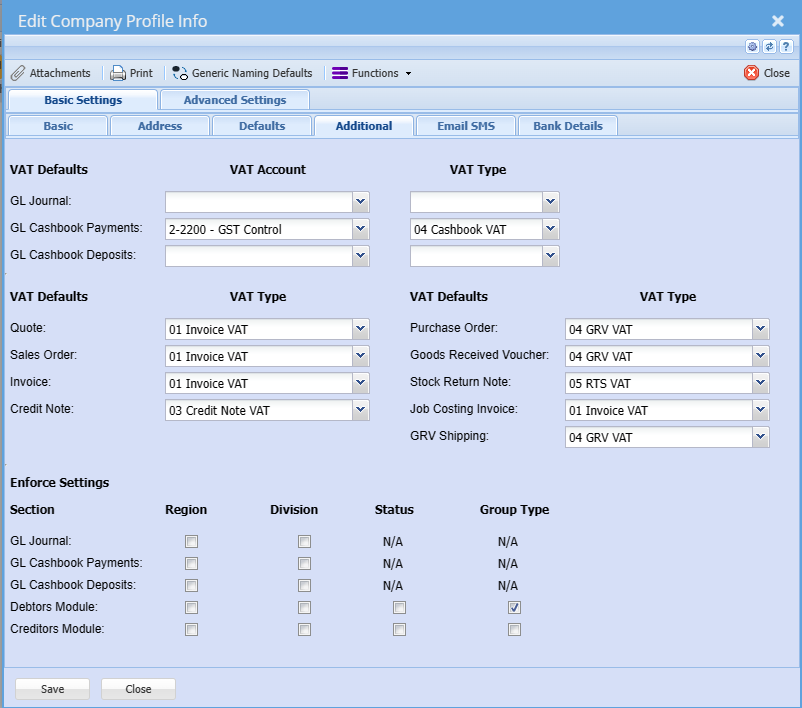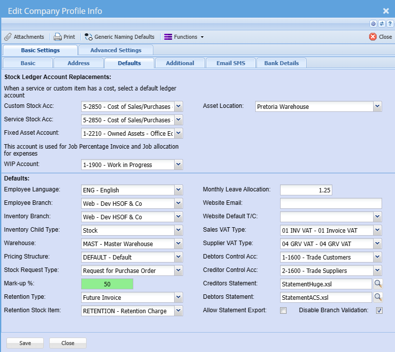 | Retention stock item | When using a retention invoice, it will use the default stock item as the retention line on the invoice |