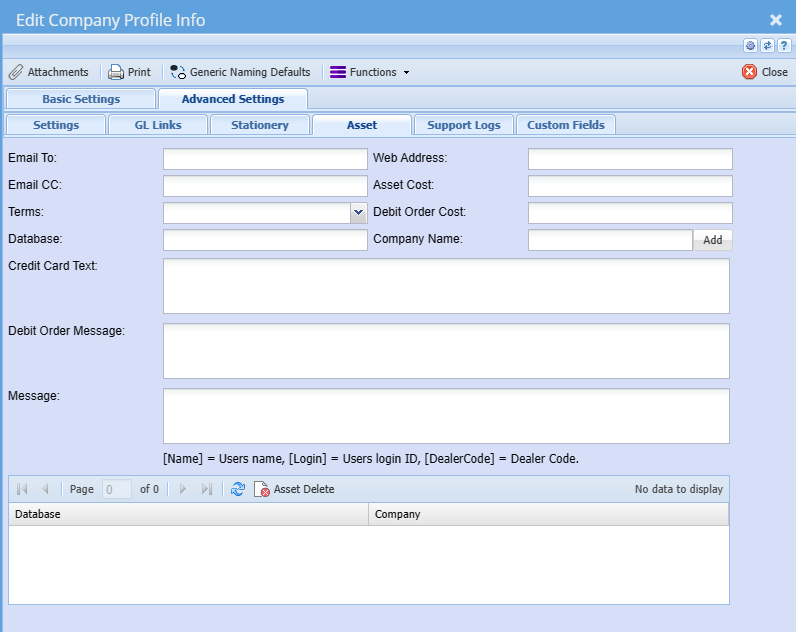 | Website default T/C (Terms & Conditions) | Select a default Terms and Conditions for clients to view when accessing the online support help manual |