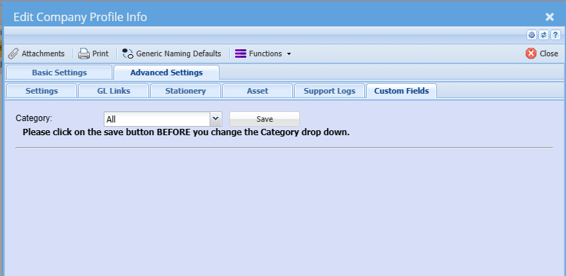 You will notice that there is no logo present and when you click on the Company Image drop down arrow it is blank.