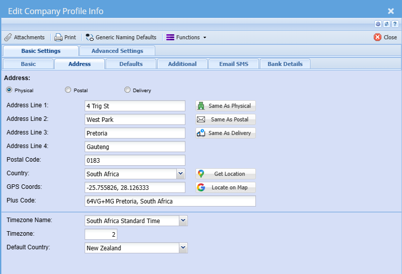 | Same as physical | When in an address section, use this button to copy the physical address |