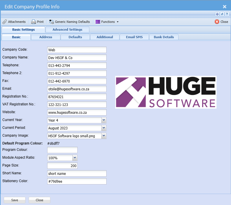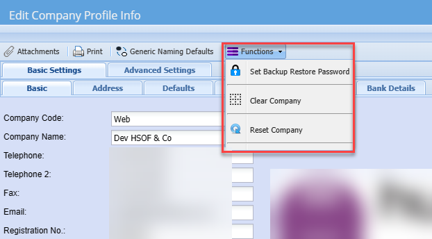 In the company profiles you will find the basic information required to input your company information. This is also the section where the logo appears on the company details will be printed in your documents like the invoice.