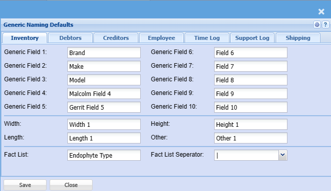 | Sales Tax type | The tax type selected here for the branch will mean that when new inventory items are created the default tax type will be the one selected for Sales |