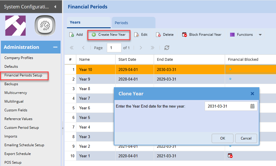 Once the year is created you can click on periods to double-check if they are created correctly.