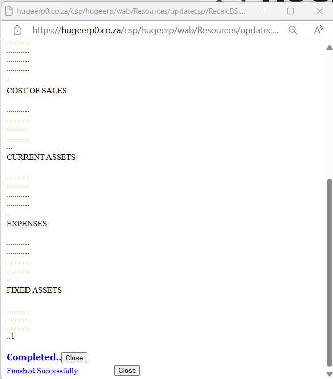 This will recalculate and integrity check all the ledger accounts in the system. Once complete click on the close button and log into the system.