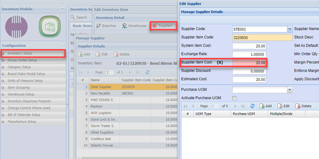 Use this to update the cost of the supplier before processing a delivery note or GRV