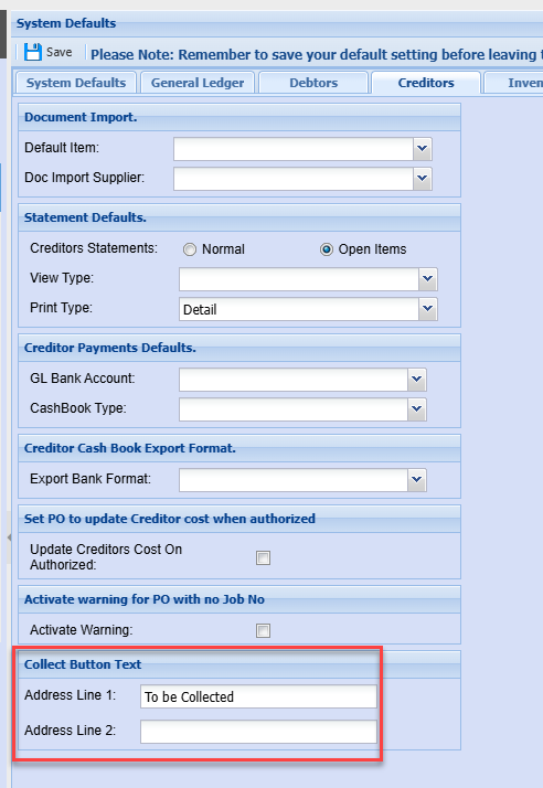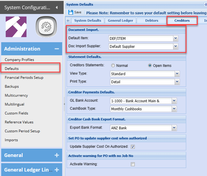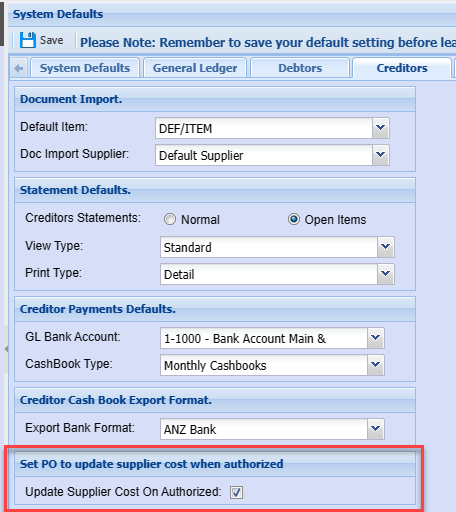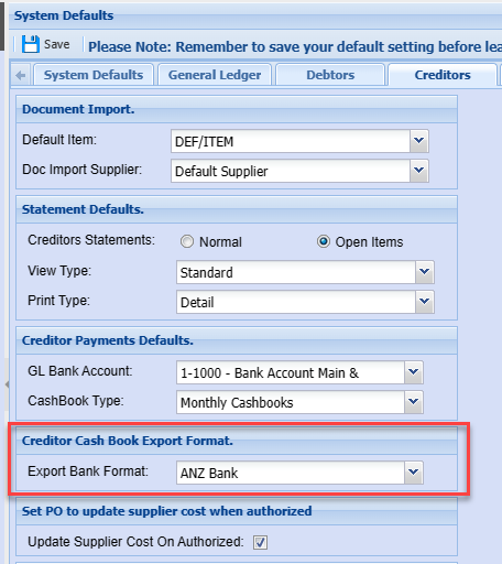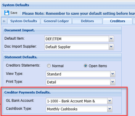 When processing a Creditor payment supplier to a cashbook it will then create the Creditor Payments Defaults.