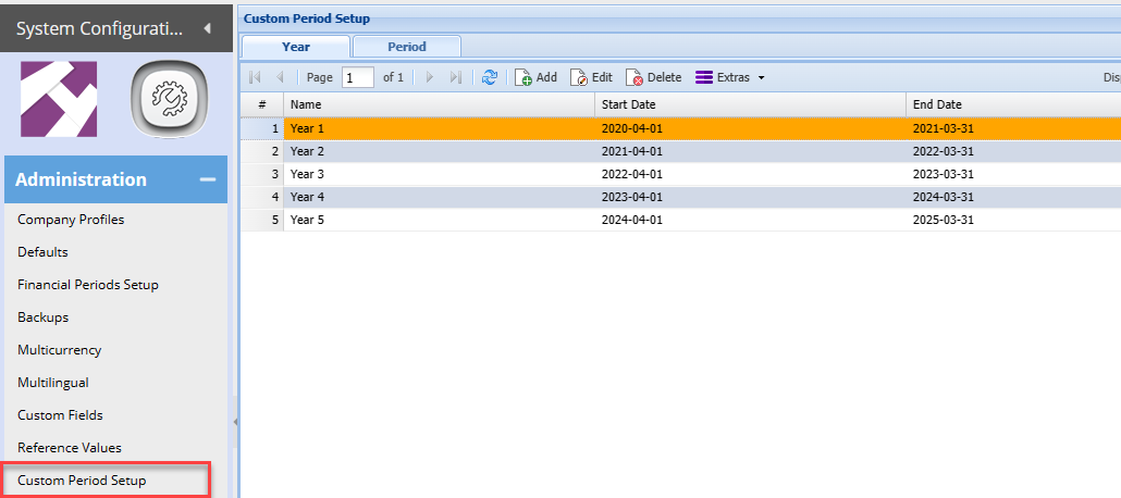 Custom periods setup