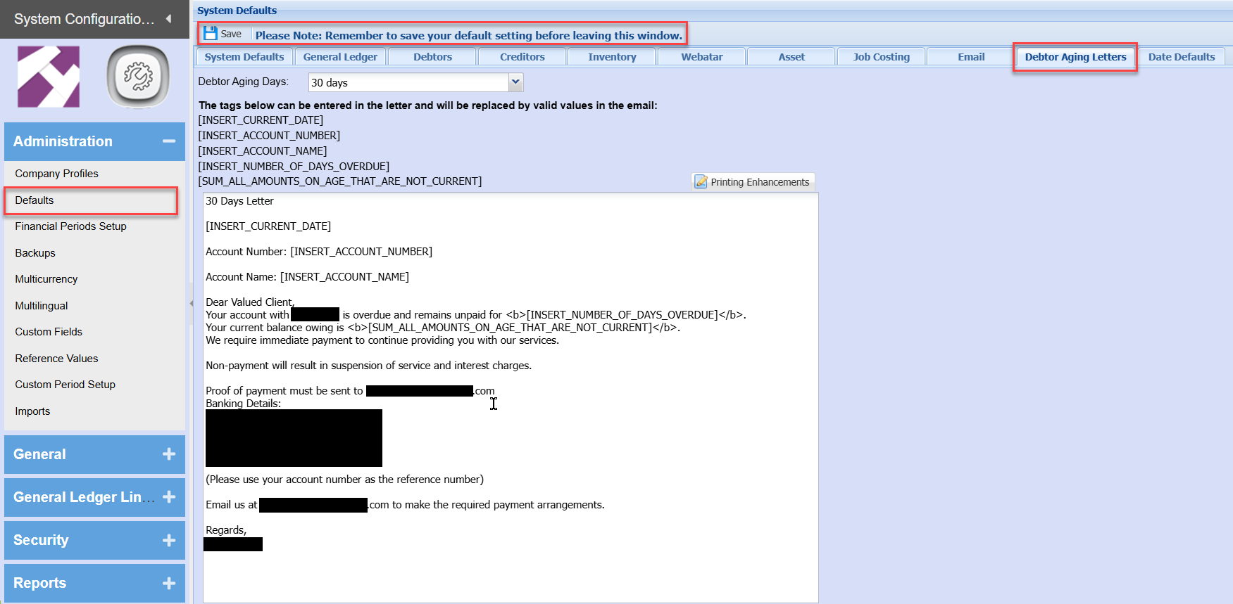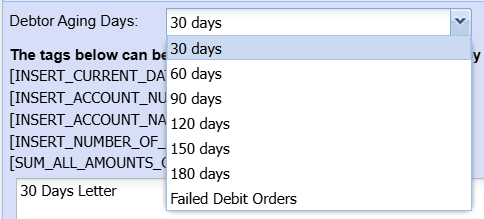 Setup of Debtor Aging Letters