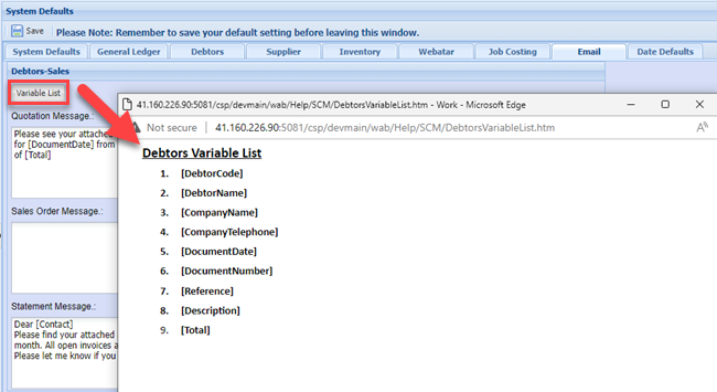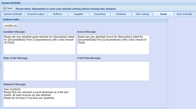 Email Defaults Tab