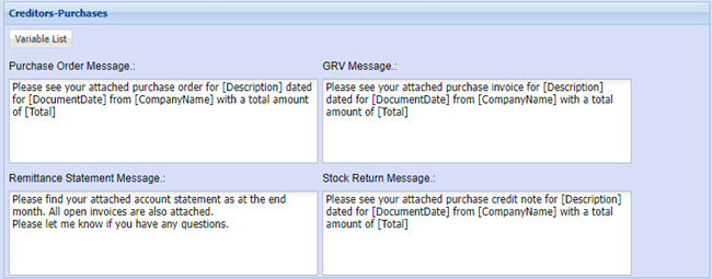 Setup default email messages when emailing customers