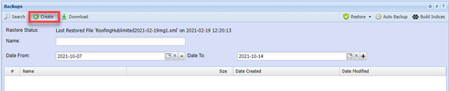 System configuration>Administration> Backups