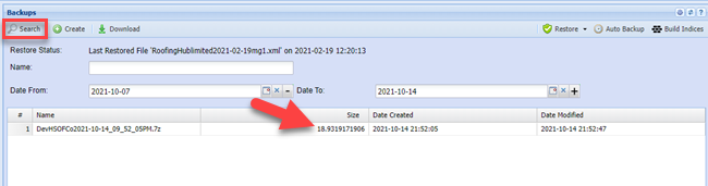 You will be directed back the main window. Click on the Search button until the “Size” Column amount stops growing.
