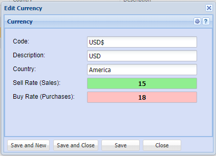 | Edit button | view/edit the currently selected Multicurrency Item |