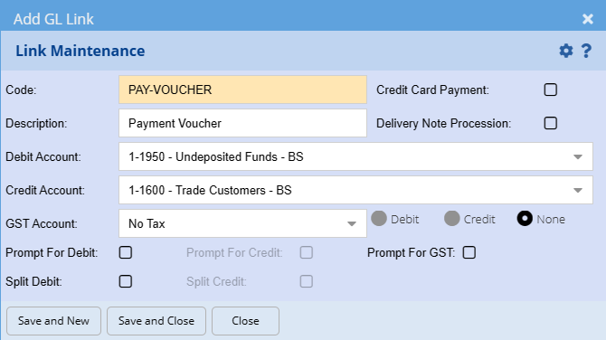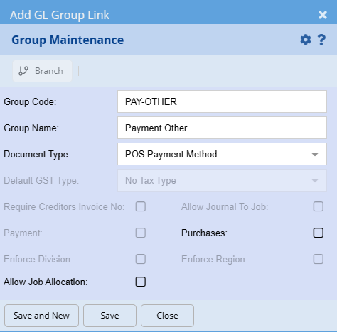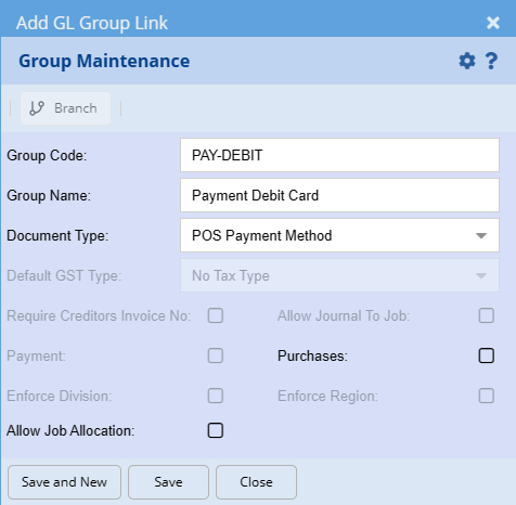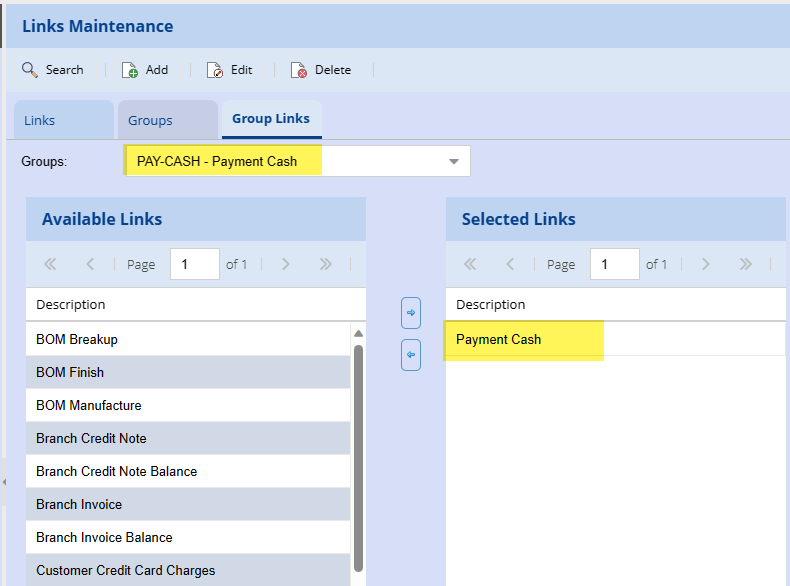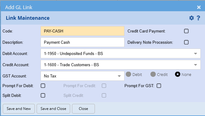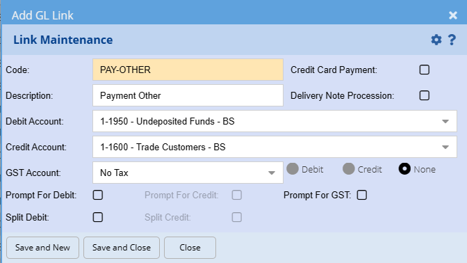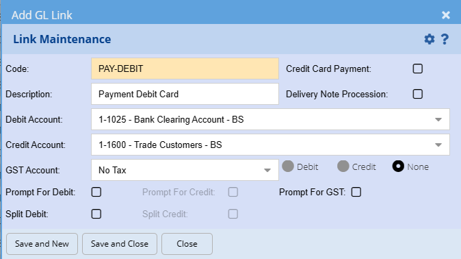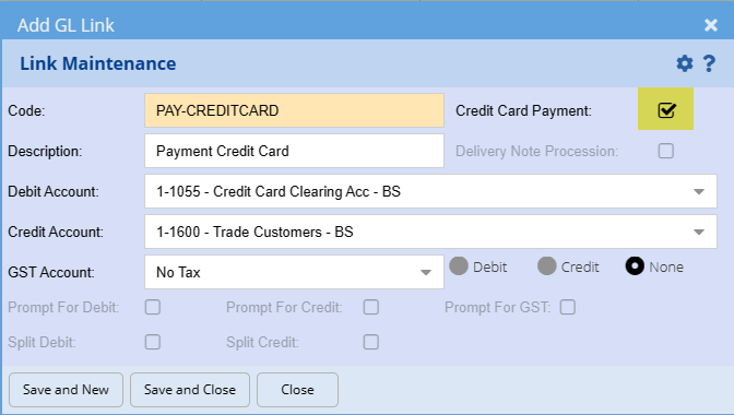 Once all payment methods setup in GL Links. Link these methods to each till for POS Payment