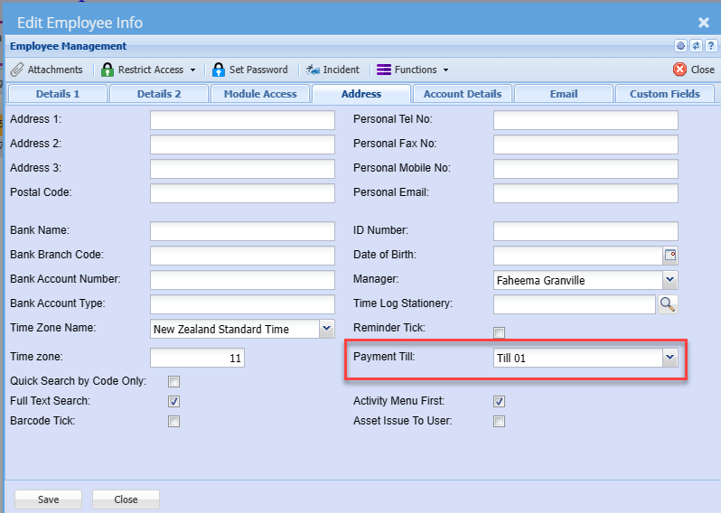 Link the till to the user setup
