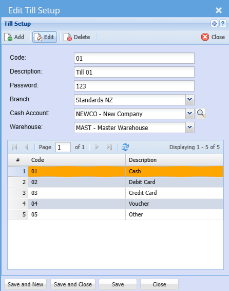 Each till is setup against the user to allow the various payment methods to be displayed.