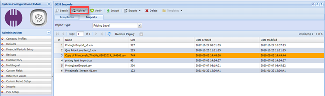System Configuration>Administration> Imports