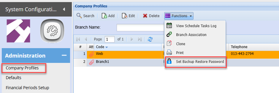 Select: Set backup Restore Password