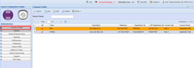 Edit the Company profile
