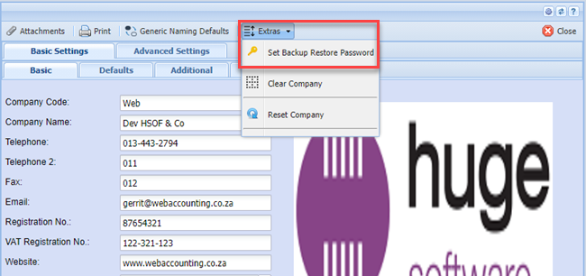 Click on the EXTRA TAB and then on the SET BACKUP RESTORE PASSWORD
