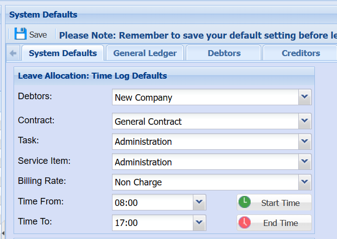 It works with Leave Allocations, when you go to create time log it uses the time log defaults.