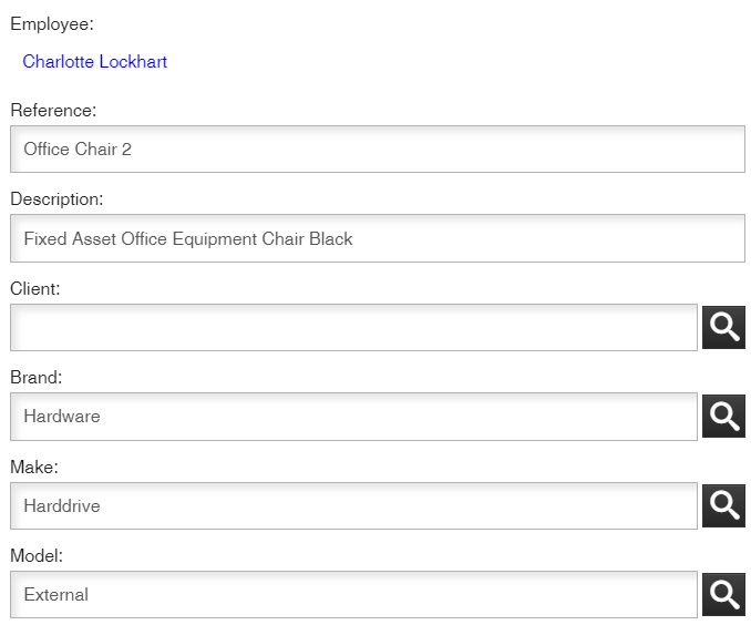| Asset Info | View financial information on the asset eg. Cost price, supplier, when purchased |