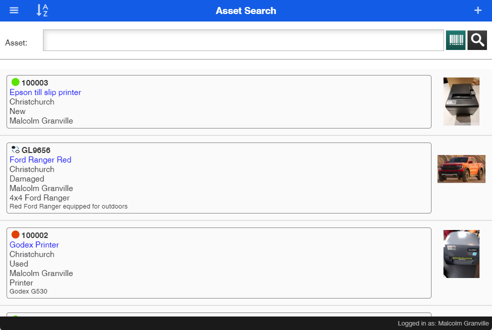 Scan a barcode to find an asset Great with a scanner |