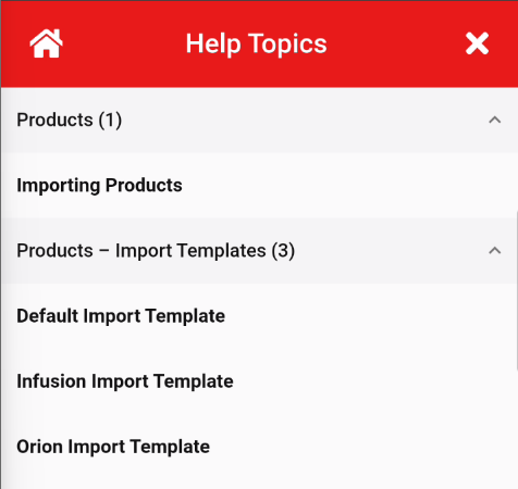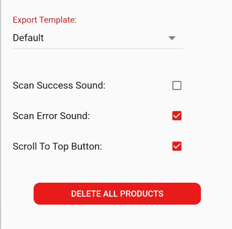 Set the export template based on the system used Default, Infusion stock take, Orion, Kudos V2, txt (standard), txt (Details) |