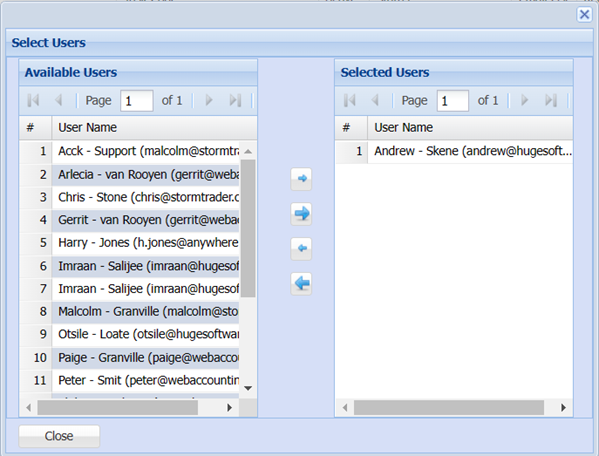 To add or remove Email recipients click on the Email icon in the Email List column.
